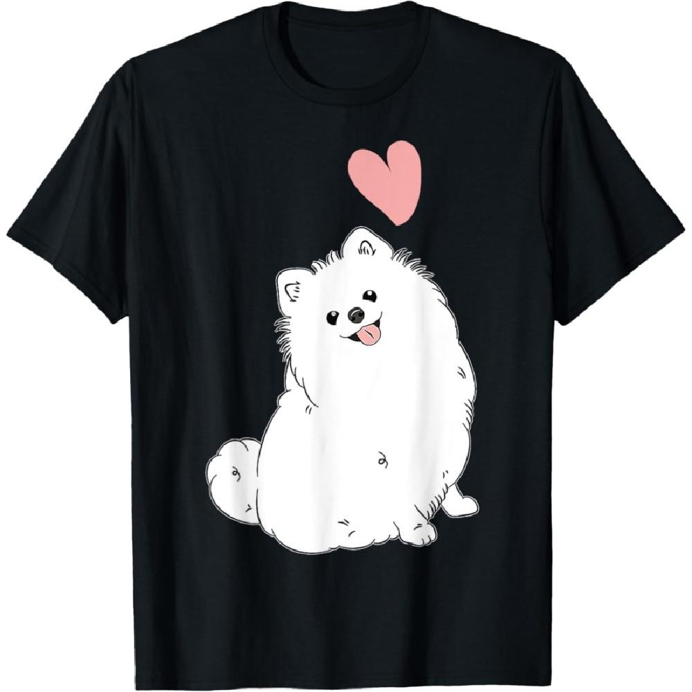 Älska Vit Pomeranian Rosa Hjärta T-shirt