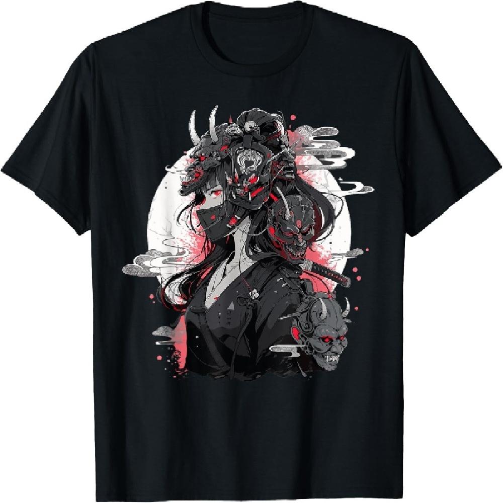 Animeflicka Gotisk Waifu Japansk Kawaii Otaku Oni Mask T-shirt