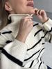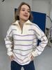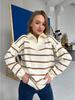 Europeisk och Amerikansk Färgblock Randig Halvdragkedja Stor Storlek Stickad Tröja Kappa