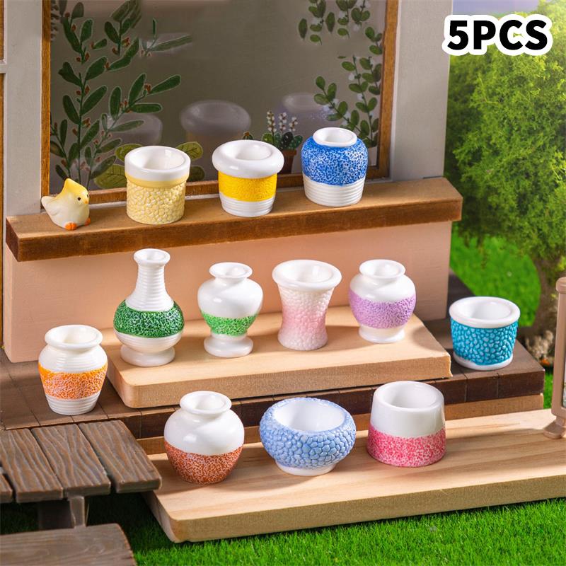 5PCS Cute Dollhouse Miniature Toy Colorful Patterned Vase Model Home DIY Decor Kids Play Toy Micro Landscape Ornaments Gifts