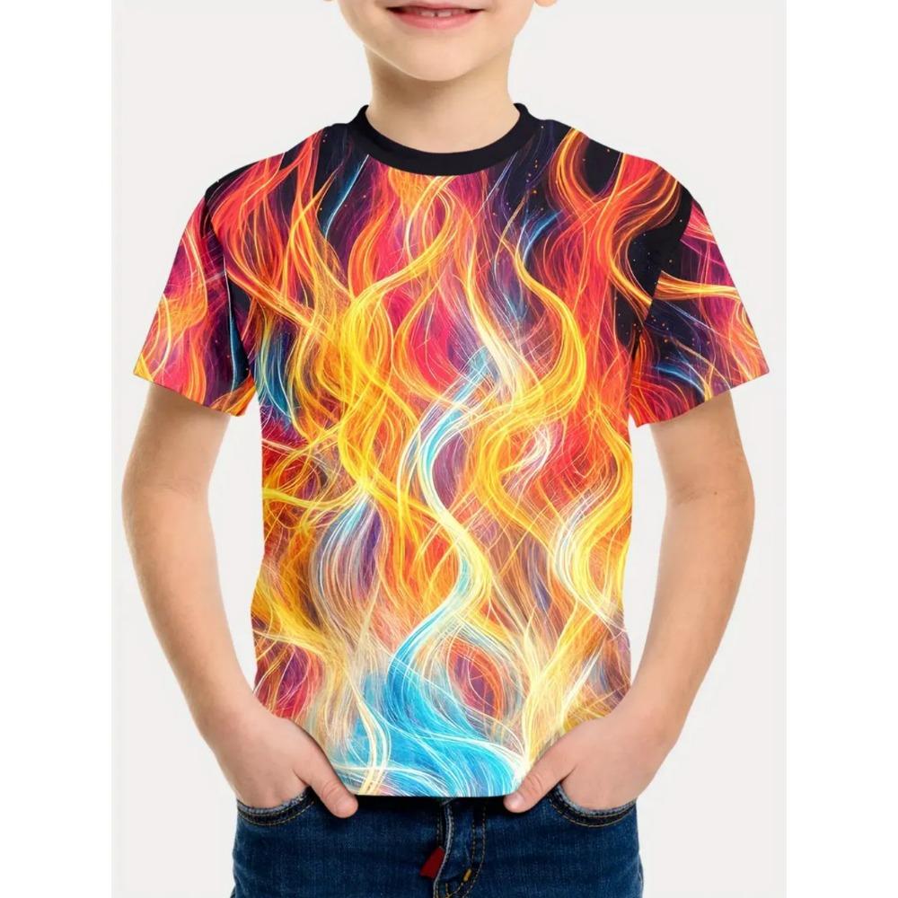 Boys' T-shirt tie dye pattern T-shirt short sleeved T-shirt children's T-shirt primary school girls' clothing casual top girls' T-shirt