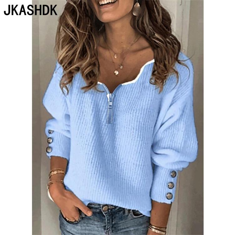 JKASHDK Dam Mode Casual Höst Vinter Enfärgad Tryck Långärmad V-ringad Tröjor
