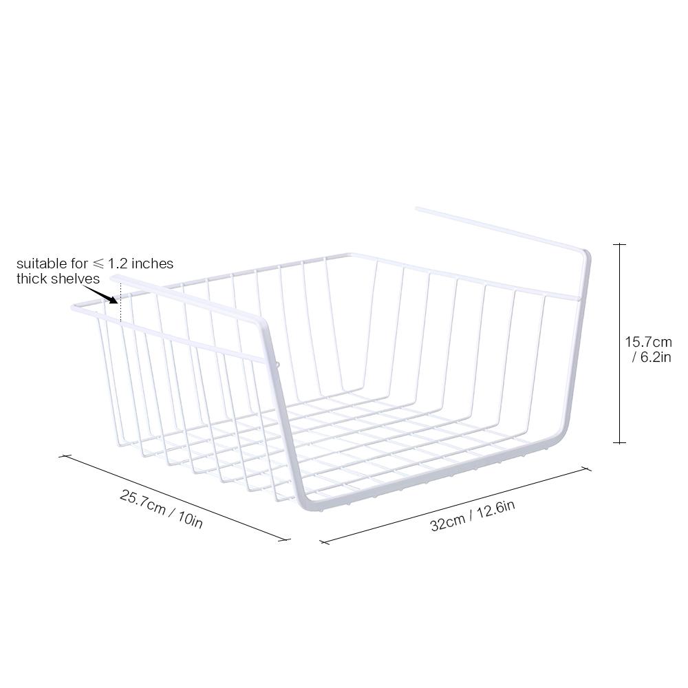 This wire basket is a great space saver! It is designed to be hung under cupboard, cabinet, bookshelf, desk and so on, no drilling need. Can perfectly hold many things like towels, clothes, toys, etc. Order now and make your home tidy!