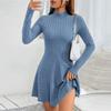 Dam Långärmad Tröjklänning Bodycon Mock Neck Ribbstickad Höst Långa Klänningar