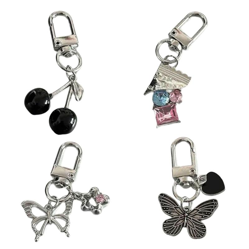 Cherry/Candy/Butterfly/Bowknot Heart Keychain Alloy Key Chain Multi-Functional Phone Chain Women Girls Purse Accessory