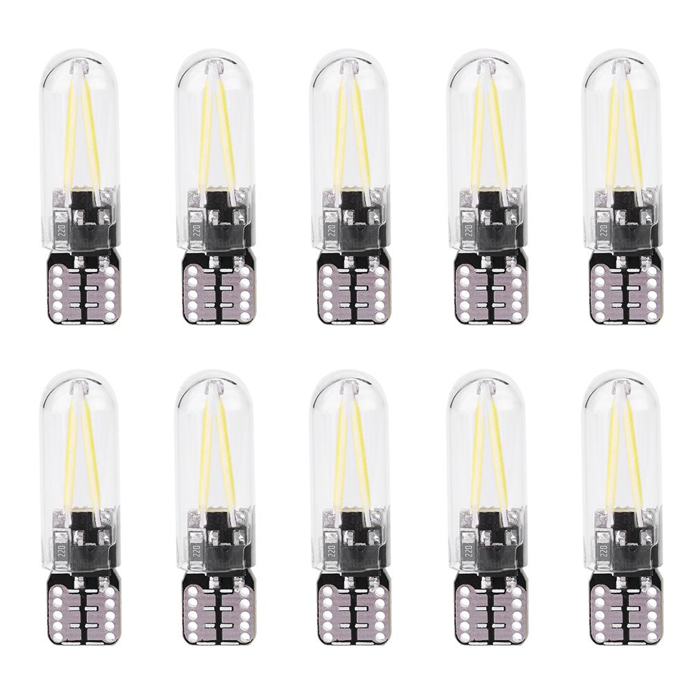 10st 12V W5W T10 194 Glas COB Filament LED Bil Läsning DRL Bagage LED-lampa Vitt Ljus