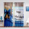 Happy Father‘s Day Sheer Voile Curtain Ocean Beach Sunset Kids Silhouettes Window Tulle Curtains for Living Room Bedroom Decor