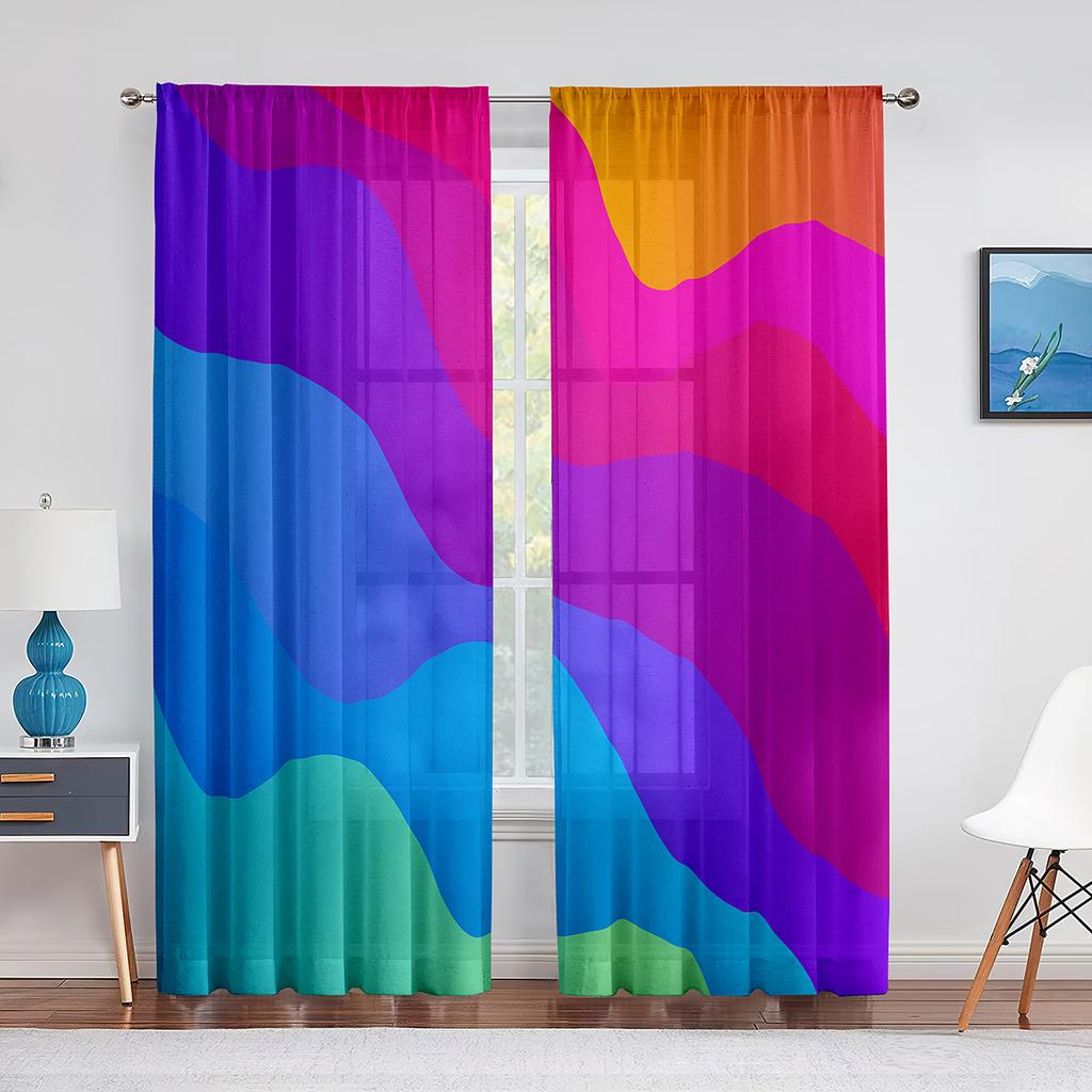 Abstrakt konst Färgglada vågor Ränder Geometriska tyllgardiner för vardagsrum Sovrumsinredning Skir voilegardin Fönsterdekorationer