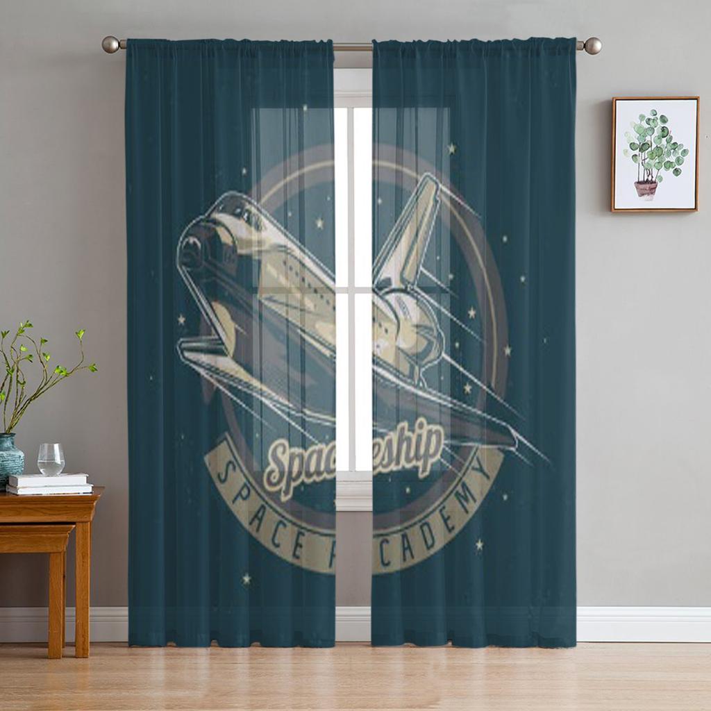 Rymdtema Illustration av Rymdskepp Chiffong Skira Gardiner för Vardagsrum Sovrum Dekoration Fönster Voiler Tyllgardin
