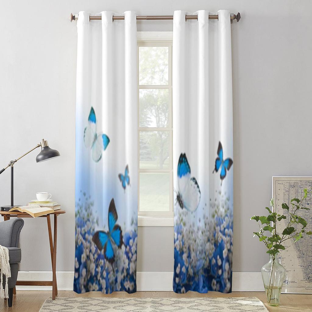 Blå Hortensia Och Fjärilar Fönstergardiner För Vardagsrum Kök Moderna Gardiner Heminredning Persienner Draperier
