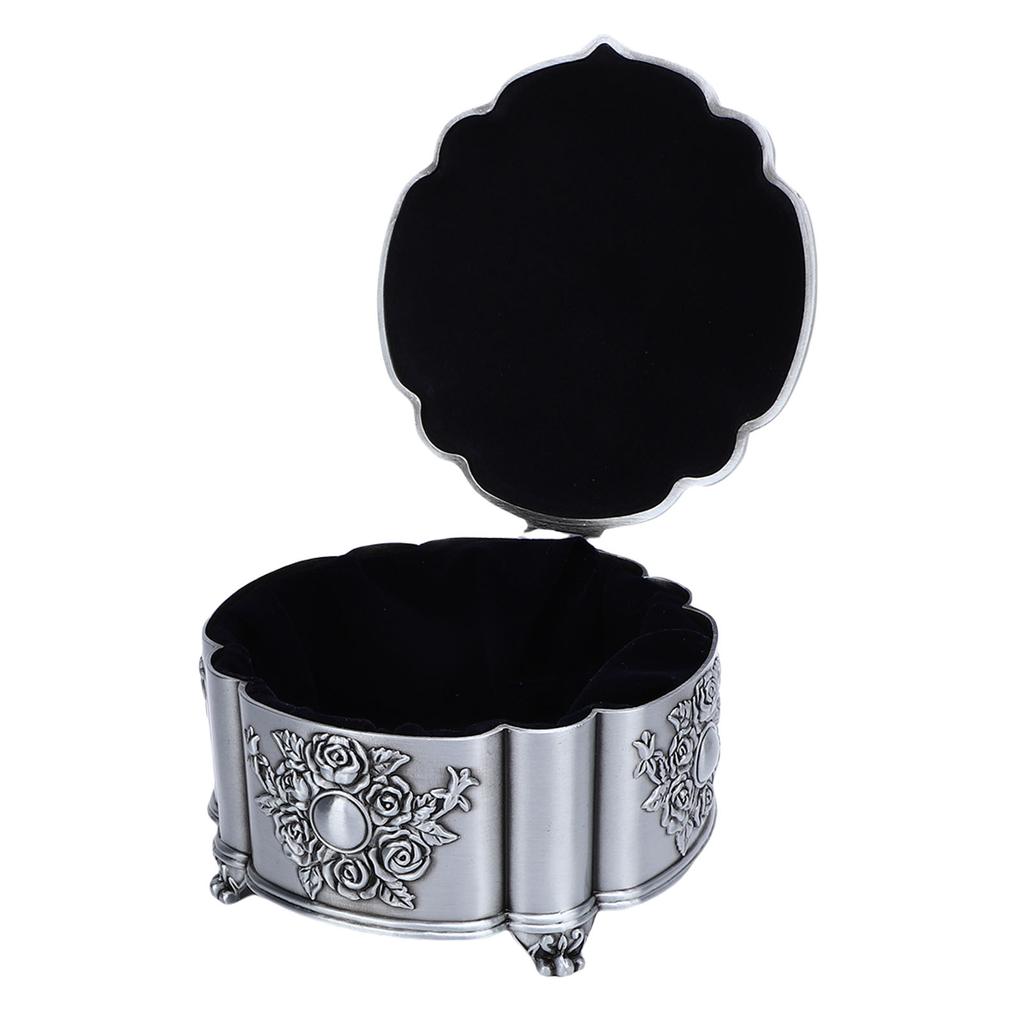 Vintage Jewelry Storage Box Zinc Alloy Antique Trinket Organizer Keepsake Box Emboss Rose Pattern Velvet Interior for