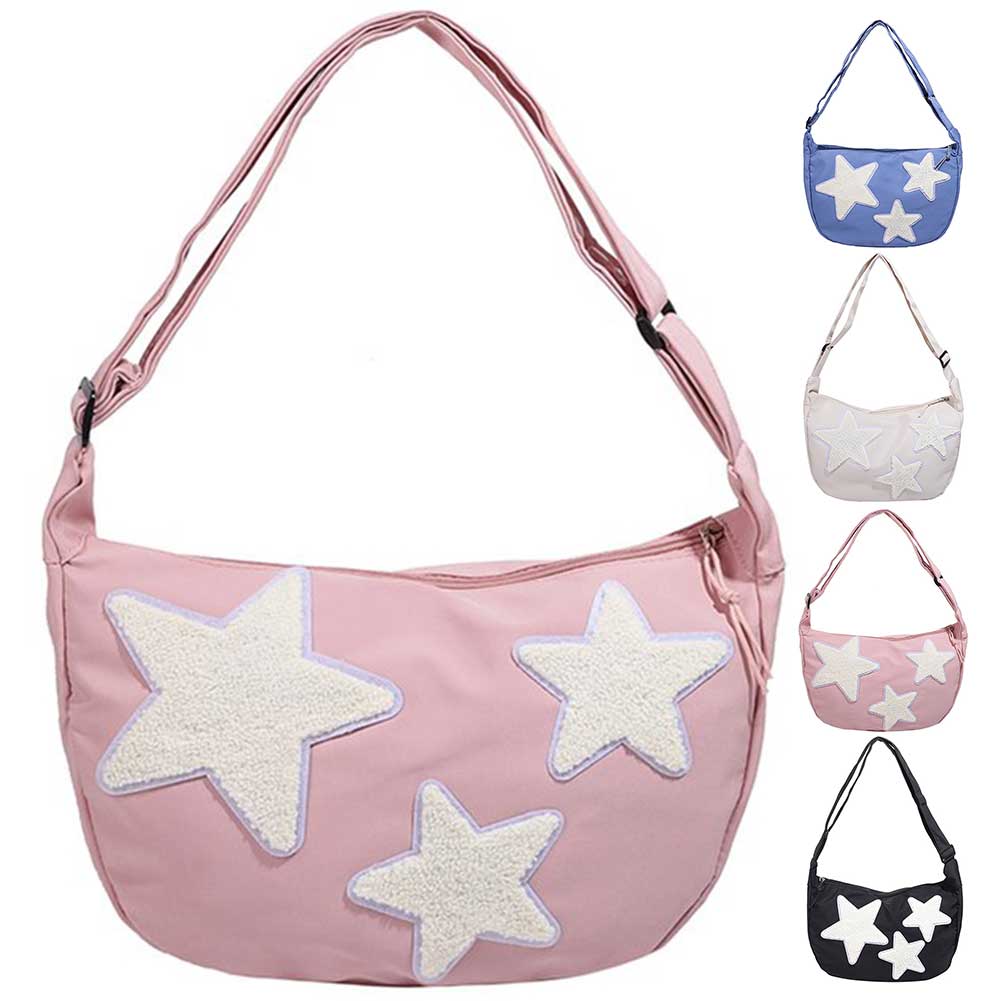 Women Canvas Messenger Bag Versatile Y2k Hobo Bag Adjustable Strap Crossbody Sling Bag Pentagram Satchel Bag Student Book Bag