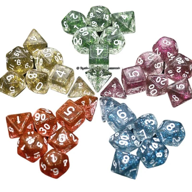 7pcs Transparent Dices Glitte Crystal Dice Set Rounded Polygon Dice for Dungeons and Dragons D&D RPG Role Playing Game Dices