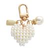 Trendy Pearls Heart Keychain Accessory Sturdy Heart Keychain With Pearls and Rose Charm For Social Event And Outings