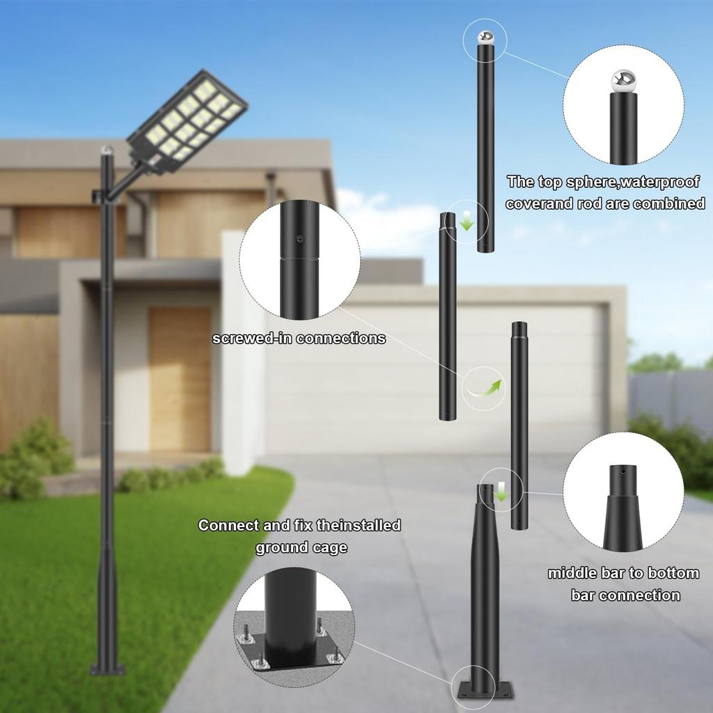 13Ft Black Solar Street Light Pole - Adjustable Metal Outdoor Lamp with Mounting Base
