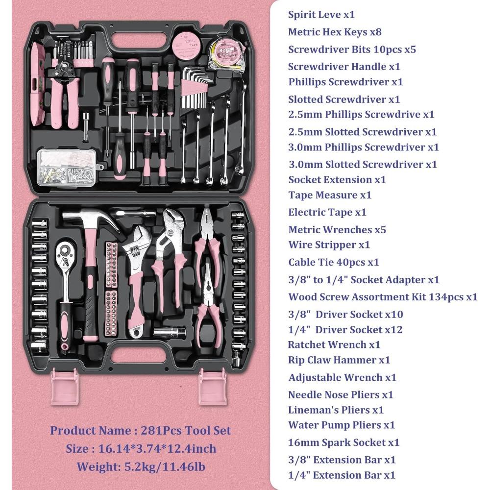 Sundpey Home Tool Kit 281-PCs - General Basic Home Auto Repair Tool Kits - Complete Portable Hand Tool Sets for Women - Tool Box