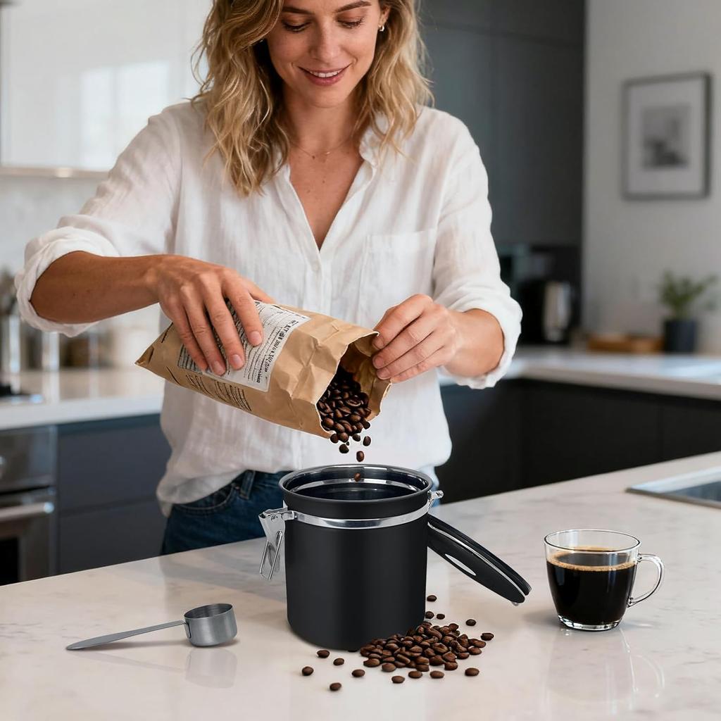 1.5L Airtight Vacuum Coffee Canister with Scoop, Stainless Steel Storage for Coffee Beans, Grounds, Tea, Sugar, Rice