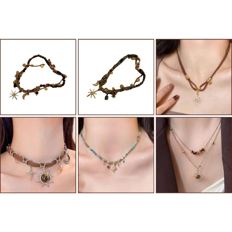 Vintage Natural Stone Beaded Bracelets Metal Star Pendant Necklace Bohemian Charm Jewelry Beads Texture for Women