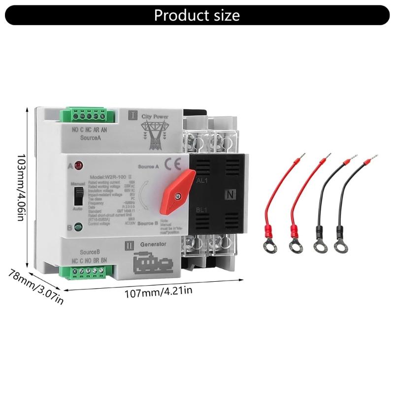 Double Power Automatic Transfer Switches 2P 100A Changeover Switches Din Rail Mounted Controller Easy to Install