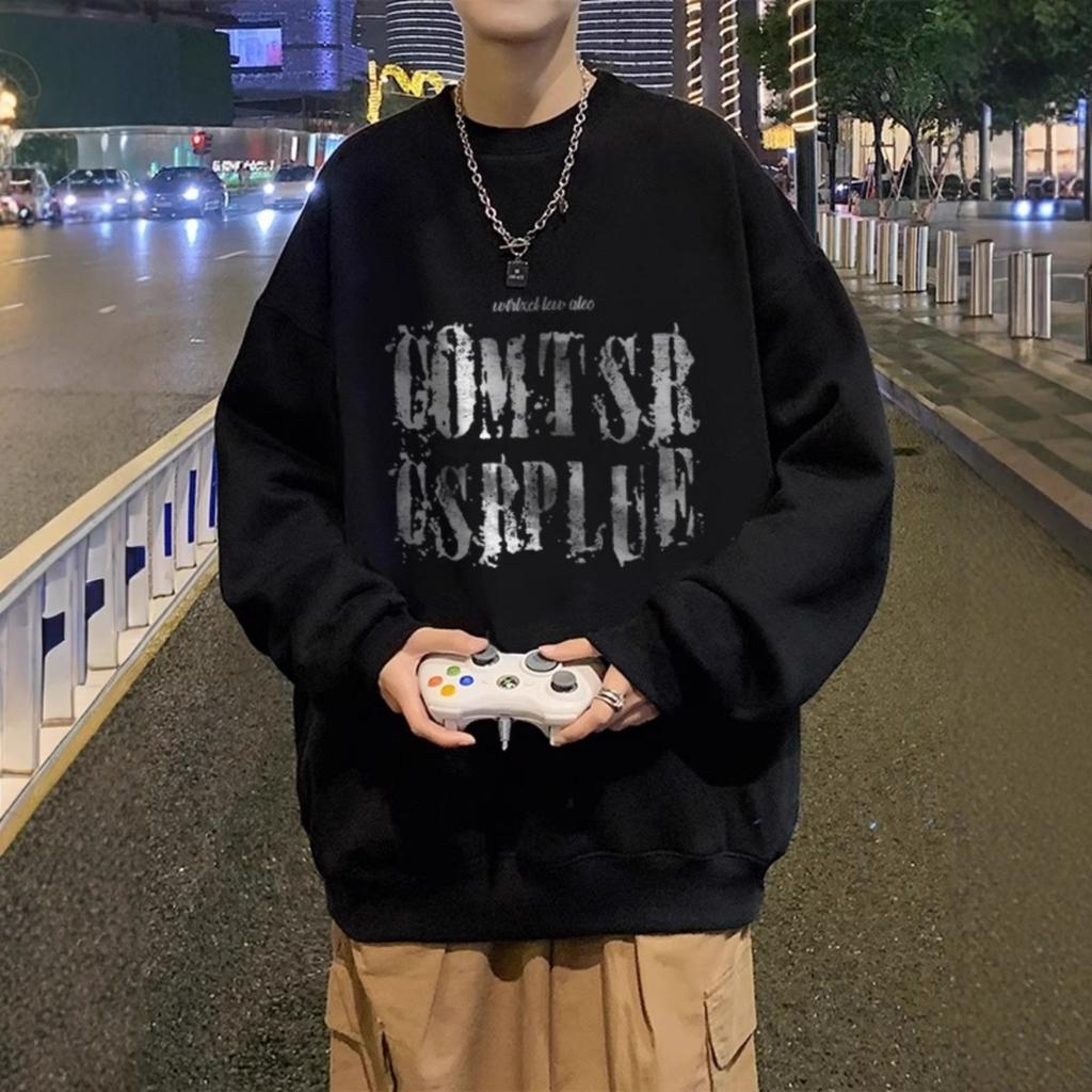 Retro Långärmad Tryckt Sweatshirt, Lös Rund Hals, Utan Huva Plus Fleecekläder