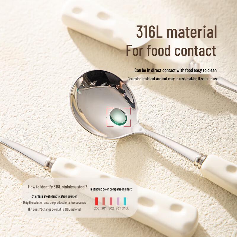 Cute Ceramic Handle Stainless Steel Spoon Set (2-Pack)