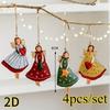 4 st/set Vintage Ängel Hängande Juldekoration Fantasy Trä Julgranshängande Prydnad Navidad Dekor Nyårspresent 2D