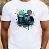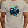 En Kreativt Designad T-shirt med Kameraprint Perfekt för Män Idealisk för Vardagskläder med Korta Ärmar Herrkläder