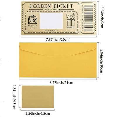 6 stycken Guld-biljetter Skrapkort med Kuvert, Skrapa & Avslöja Överraskningsbiljett För Att Skriva Din Egen Special