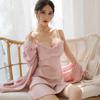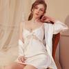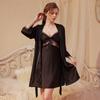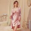 Sommar Dam 2 Delar Morgonrock Pyjamas Set Sexig Spets Hängsel Pyjamas Pyjamas Lös Siden Satin Hemmakläder Hemmakläder