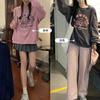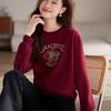 Sammetströja med broderad lilja för kvinnor, lat stil, lös, höst och vinter, ny, avslappnad, rundhalsad, tröja