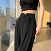 Ny kinesisk stil svart kostym vida benbyxor för kvinnor på våren och sommaren nya högmidjade höfttäckande hängiga vardagsbyxor