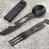 3-i-1 Utomhus Campingbestickset Kompakta Korrosionsbeständigt Stål Gaffel Sked Kombinationer för Ryggsäcksvandring Vandring och Picknicks
