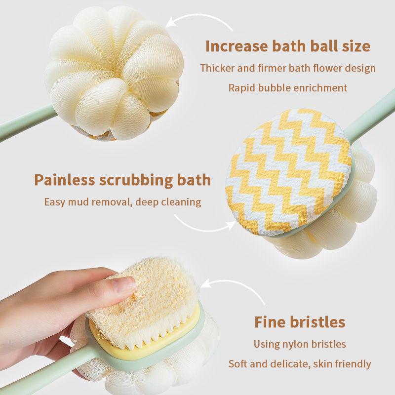 Dubbelsidig skrubbverktyg Badborste Långt handtag Mjuk päls Badborste Avtagbar skrubbhandduk Stark ryggskrubbning