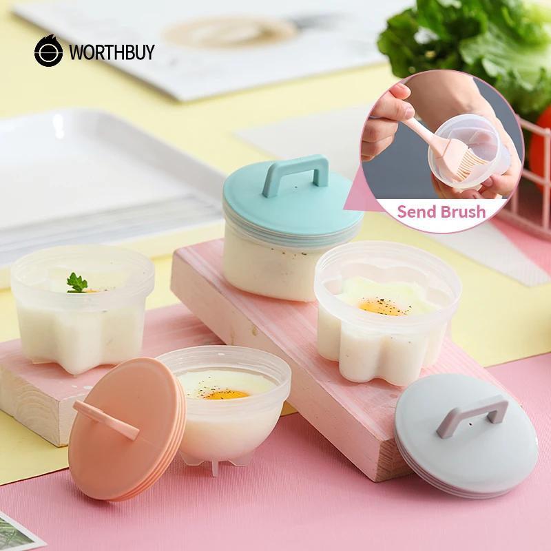 WORTHBUY 4 st/set Söta äggkokarverktyg med borste Plastäggkokare Pocherare För barn Bakning Äggformstillverkare Kökstillbehör