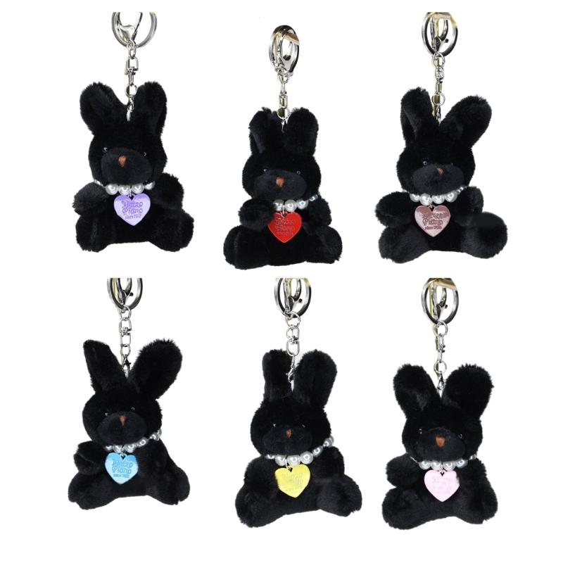 Söt Liten Kanin Nyckelring med Pärlor Pärlbeströdd Hjärta Hänge Nischad Stil Nyckelringar Väska Ryggsäck Dekoration för Flickor