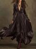 Sammet Dam Elegant Vintage Golvlång A-linje Djup V-ringning Långärmad Maxiklänning