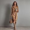 Ny elegant långärmad skjortklänning med ståkrage och sammetsmanchester för kvinnor