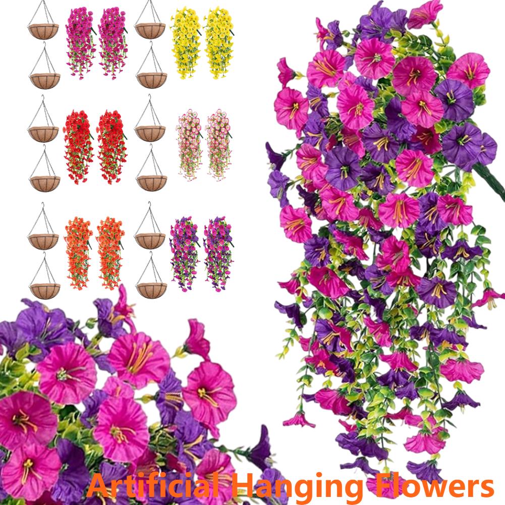 2/4 ST Konstgjorda Hängande Blommor UV-beständiga Morgonvinda Rankor Realistiska Hängande Växter för Trädgård Uteplats Balkong Gård Dekor