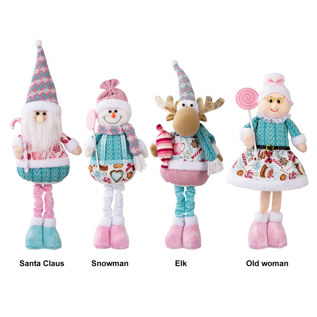 Retractable Christmas Doll with Retractable Legs Pink Santa Claus Snowman Elk Standing Doll for Home Display and Festive Window