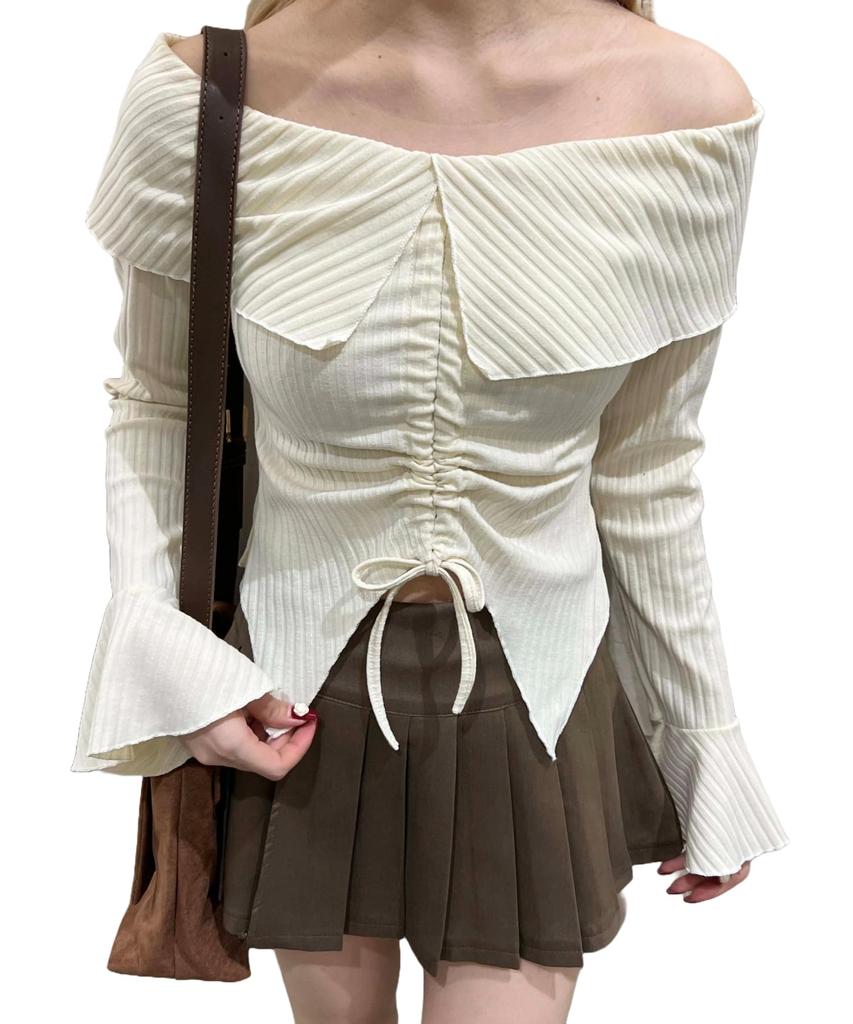 WEGO PHILLY Långärmad Flickig Vardaglig Koreansk Perfekt Gåva för och Storlek Snörning Off-Shoulder Topp, T-shirt, Vår/Sommar Outfit, Stil, Vår,