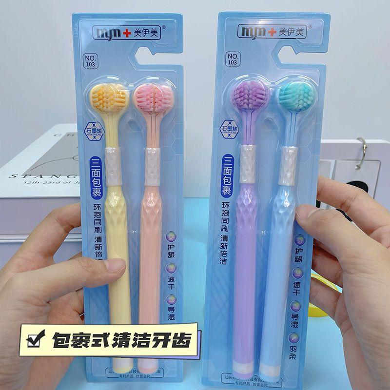 Three sided toothbrush for adults, soft medium bristled for home use, all-around for couples, college students, and families