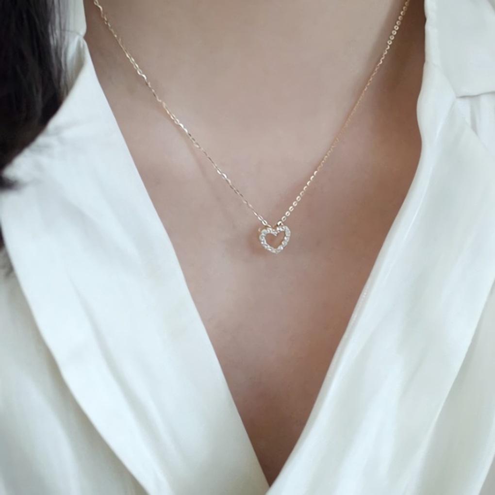 Women's Simple Heart Cubic 925 Silver Necklace 14K Gold Plated