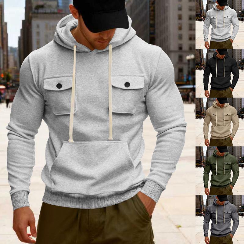 Autumn and Winter Heavyweight Men's Loose Outdoor Sports Velvet Hooded Multi-pocket Casual Workwear Sweatshirt for Men