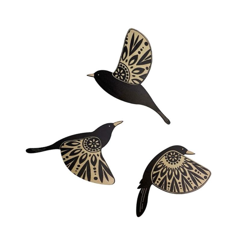 Pack of 3Wood Birds Hangings Office Kitchen Artistic Decorations Handmade Gift Flying Birds Background Wall Ornament