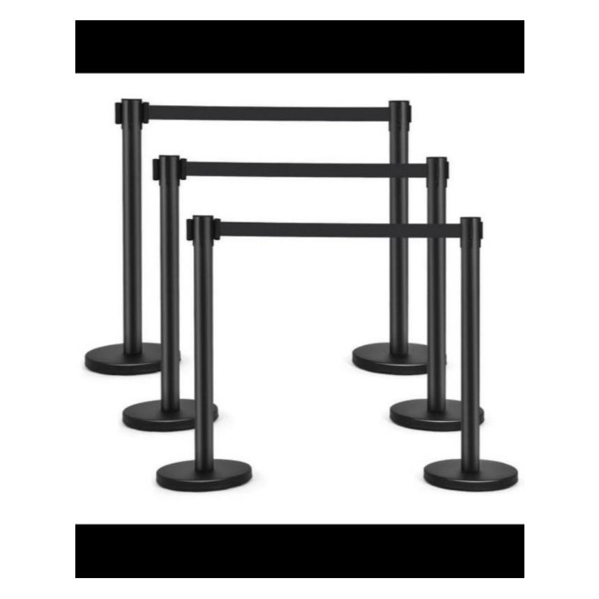Extra Thick Stainless Steel Black Queue Pole Indoor And Outdoor Signage Crowd Control Barrier Pole