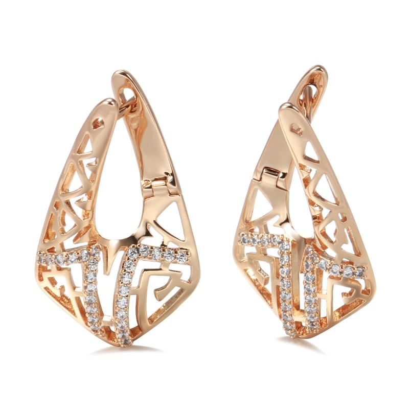 Trend Rose Gold Earring For Women Micro Wax Inlay Natural Zircon Hollow Flower Unusual Vintage Fashion Daily Jewelry