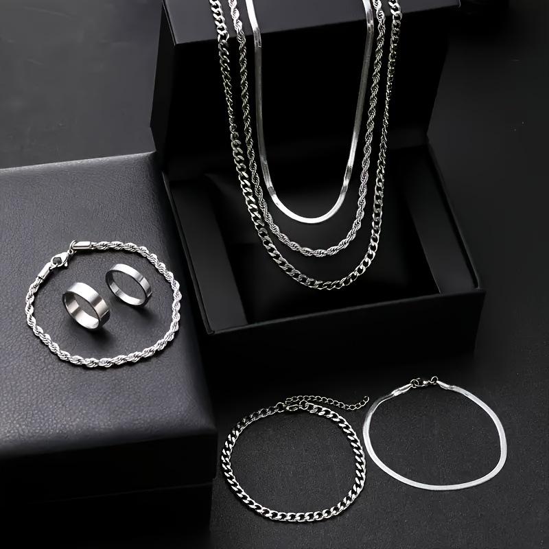 Halsband Armband i Rostfritt Stål Platt Enkelt Ring Lätt Lyx Minimalistisk Stil Titanstål Smyckesset Grossist