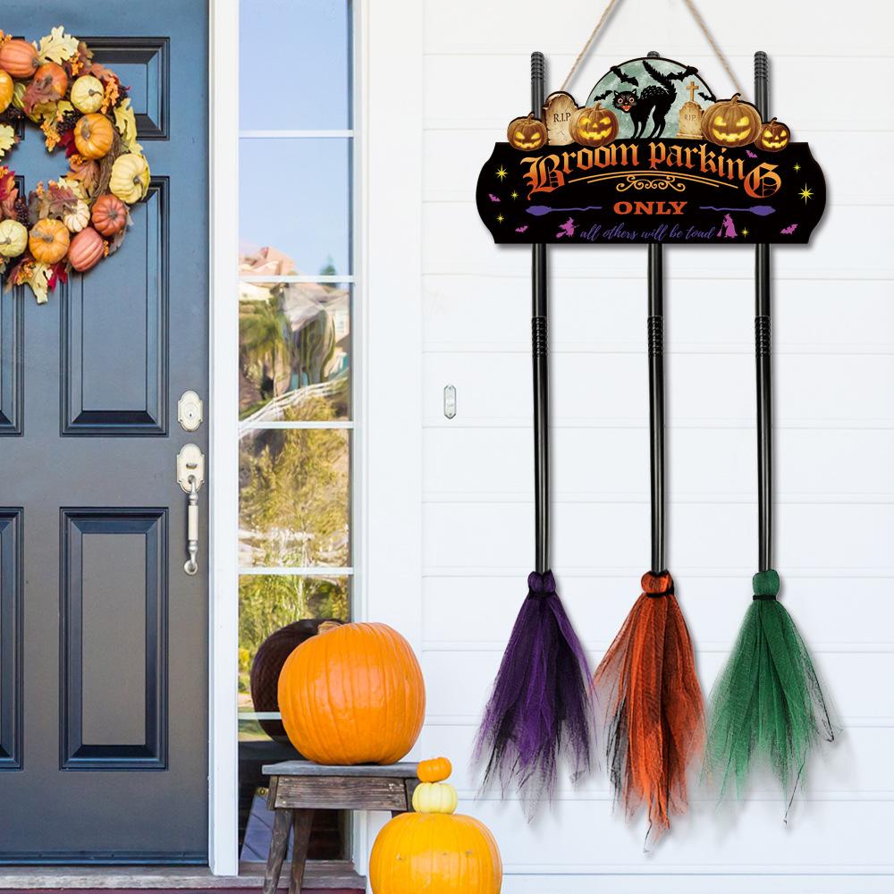 Halloween Decoration Broom Sign 3 Witches Brooms for Front Porch Wall Home Office Indoor Outdoor Wall Halloween Decoration