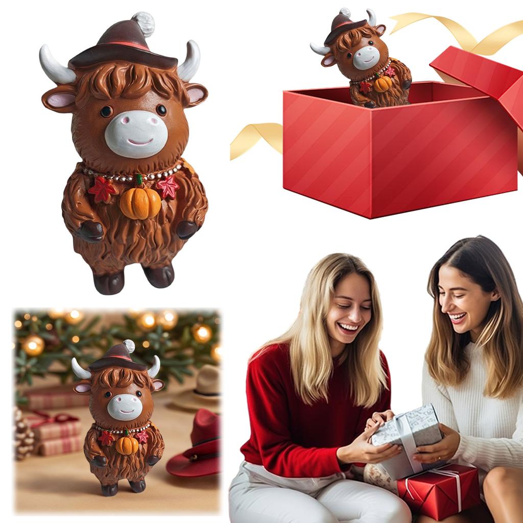 Söt Highland Cow Figurin med Tomtemössa Highland Kalv Skrivbordsdekoration Härlig Juldekoration Gåva för Trädgård Bord Hylla