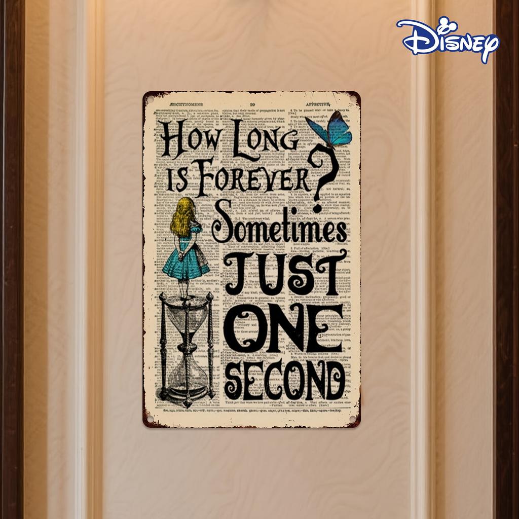 1pc Whimsical Vintage Metal Tin Sign - "How Long is Forever? Sometimes Just One Second" with Girl and Hourglass Design, 20.32x30